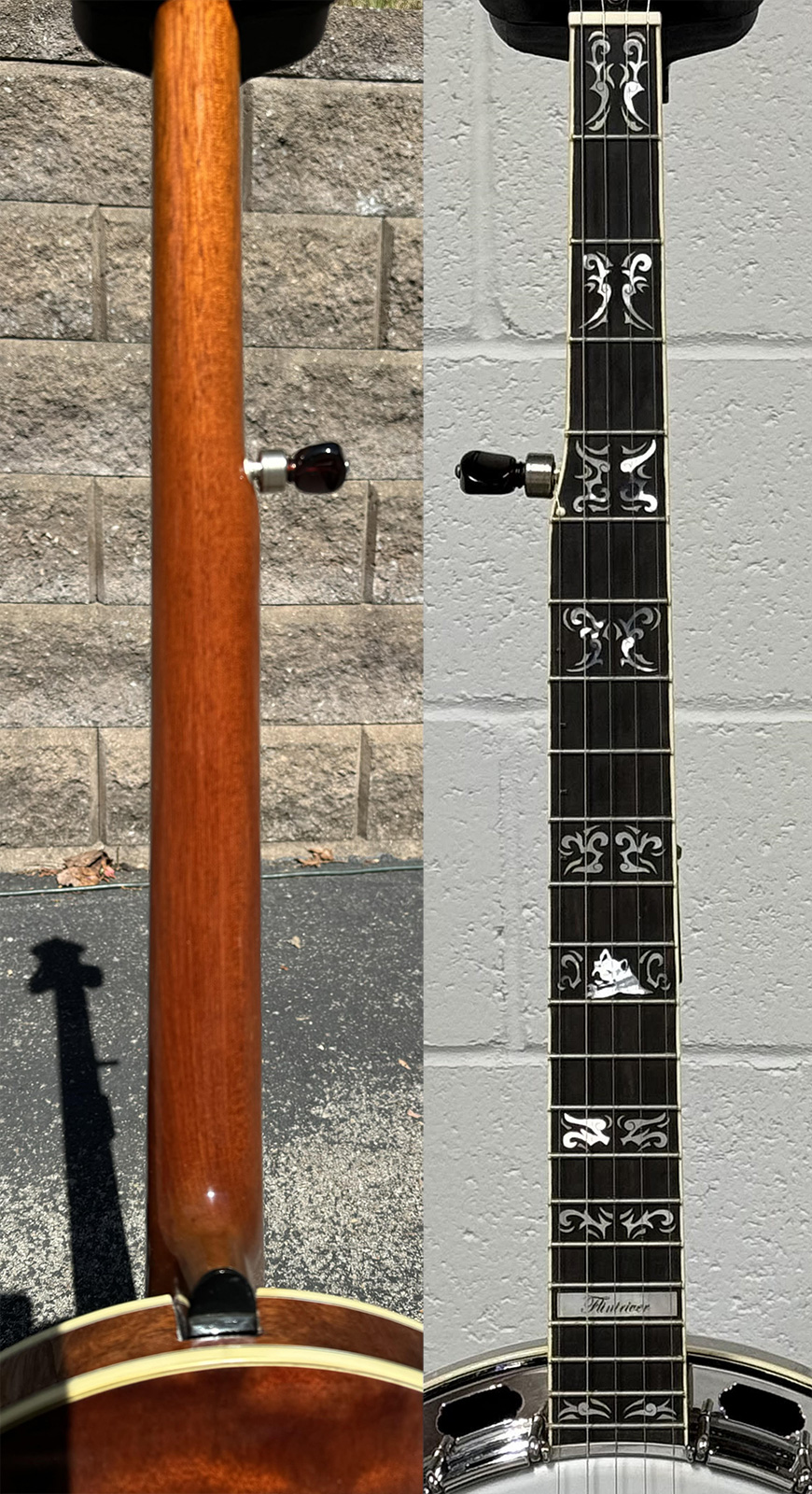The inlay work is unique and absolutely top quality work. Both banjos are supremely crafted and set up for the most discerning of players.